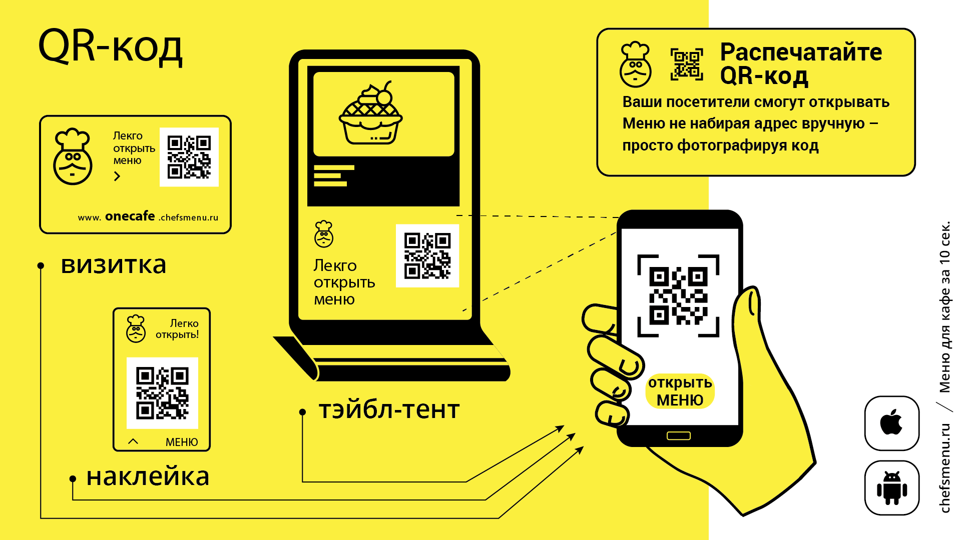Легкое открытие меню на телефонах посетителей вашего кафе!
